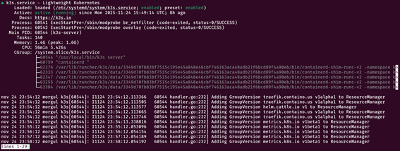 sudo systemctl start k3s.serviceQuando o prompt estiver disponível novamente, veja o status do serviço com sudo systemctl status k3s.service. Deve mostrar algo como: