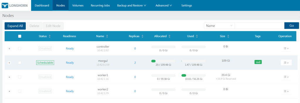 Por padrão, o Longhorn irá montar um volume dentro de uma pasta. Apesar de isso ser possível, eu prefiro recomendar que você compre um SSD, nem que seja pequeno, pra usar exclusivamente pra o cluster. Eu sinto que o meu environment fica mais seguro dessa maneira.